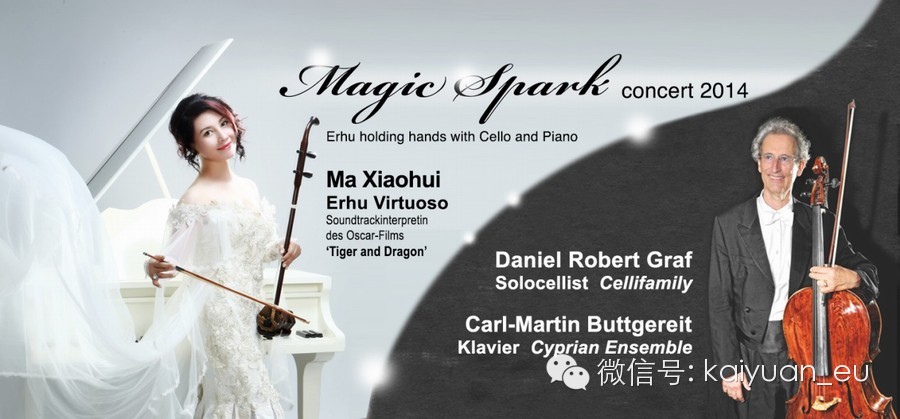 在音乐会中,中国的二胡将发挥独特的优势,联合大提琴,钢琴,以及歌剧演员演绎 :巴赫组曲《G弦上咏叹调》,《奇异恩典》,《以马内利》《爱的忧伤/爱的欢乐》等西方经典,同时中国的《茉莉花》《空山鸟语》《梁祝》《卧虎藏龙》等乐曲也会令德国观众惊艳。