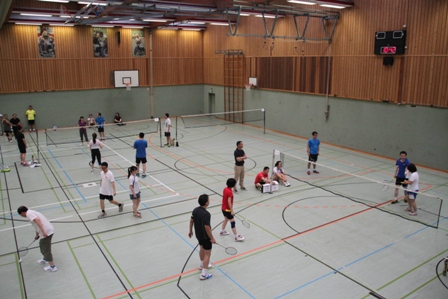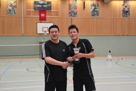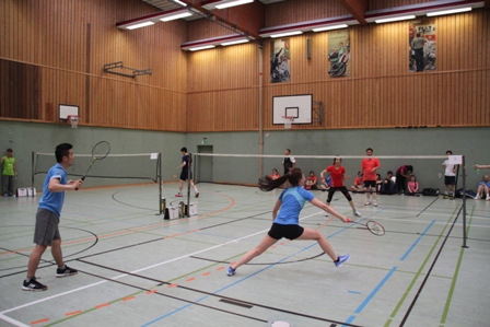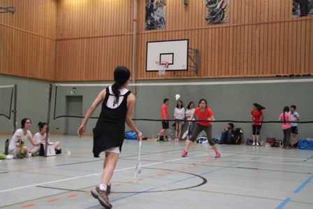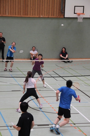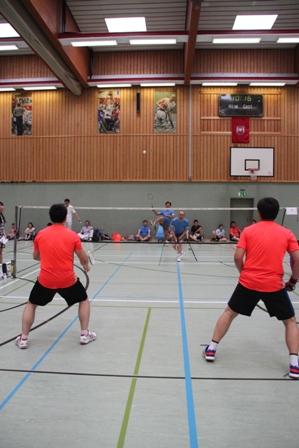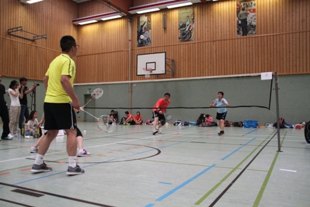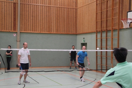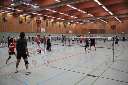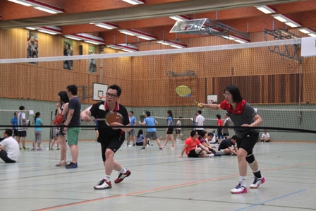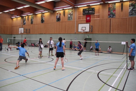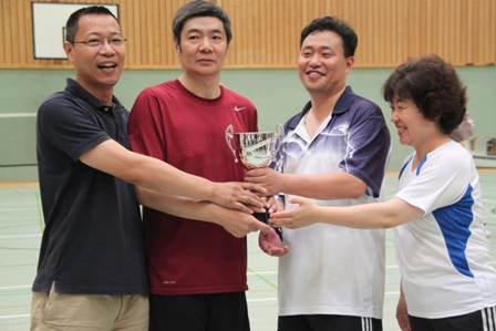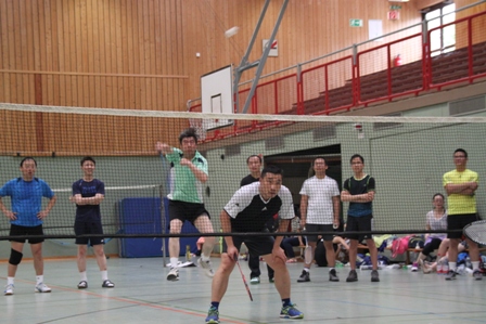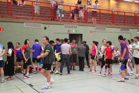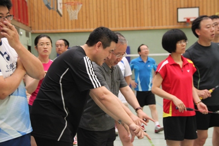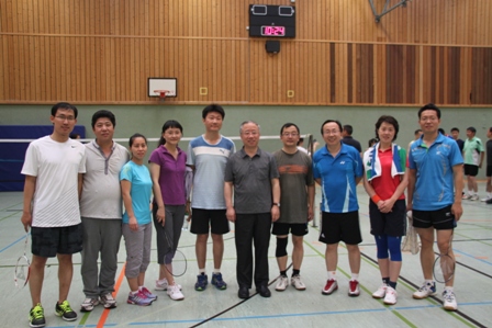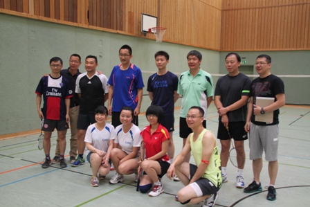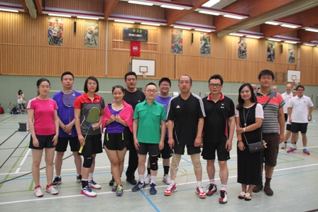 时值德国百年一遇的高温酷暑,静坐不动都会汗流不止,比赛场上更是热火朝天,参赛选手们精神抖擞,意气风发,面对对手沉着冷静,敏捷的身手、娴熟的技巧、激烈的扣杀,一扫平日里办公室写字间里的儒雅,时而网前截击,时而以巧破千斤,时而大力扣杀,精彩的场面,赢得在场观众的阵阵掌声和欢呼声。在场的参赛选手也均表示经过一年的定期训练,今年各队的整体水平和去年比明显提高了一个层次,比赛规则也得到大大完善。