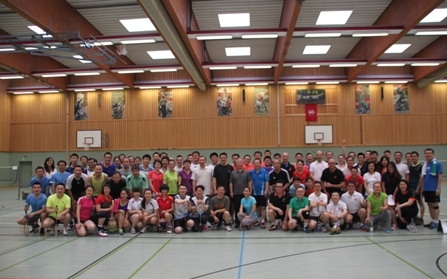 2015年7月19日《第二届法兰克福中资企业羽毛球比赛》在Franz-Böhm-Schule体育馆圆满结束。本次大赛由驻法兰克福总领馆、法兰克福中资企业协会联合主办。自14年第一届中资企业羽毛球比赛之后,羽毛球运动在法兰克福有了更广泛的群众基础,每个周末协会租用专业场地供娱乐,这一举动深受员工及家属喜爱,本次比赛也受到了各单位的高度重视、积极参与,参赛选手多达80人,到场助威观众达到120多名,远远超过了上一届的参与人数。