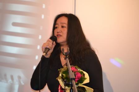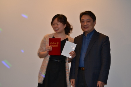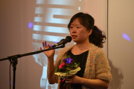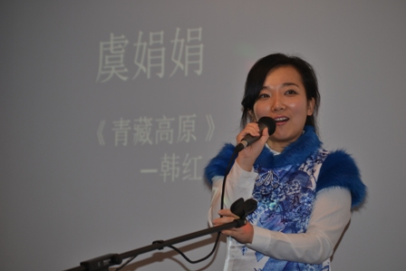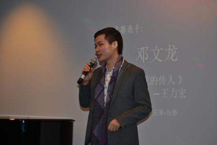 上届亚军得主,来自中国银行法兰克福分行的王丁首先亮相,带来了歌曲《红旗飘飘》,洪亮高亢的歌喉为晚会打响了头炮;