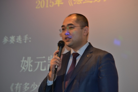 3月6日晚,法兰克福中资企业协会主办的2015年”法兰好声音—元宵歌会”大赛在中国驻法兰克福总领馆举行。恰逢元宵节后的周末,约200名中资企业员工、家属欢聚一堂,品尝了总领馆准备的元宵节晚宴,观看了14名参赛选手的精彩表演,一起渡过了一个愉快的中国节。