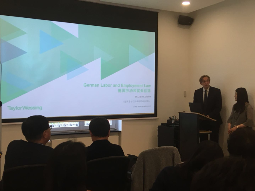对于第二项专题,随着中资企业在德投资日益活跃,除从国内派遣人员外,越来越在德中资企业雇用了德籍雇员,因此了解德劳动法基本内容,依法雇用、管理员工,对企业长期发展至关重要。本次讲座结合实例从应聘程序,雇佣合同的订立、内容、终止,社会保险/所得税和雇员代表六方面展开针对性的介绍,使参会企业对依法雇用、管理员工有了更深刻的认识。