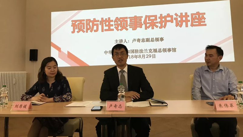 为进一步帮助在德中资企业了解德国安全形势和提高风险防范意识,近日,法兰克福中资企业协会组织中资企业参加驻法兰克福总领馆预防性领事保护讲座。讲座由驻法兰克福总领馆副总领事卢奇志主讲,驻法兰克福总领馆经商领事朱伟革主持,来自40余家中资企业和机构的70余名员工出席活动。