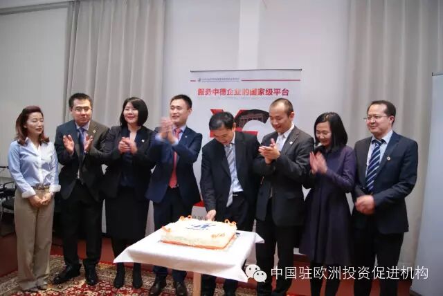 金秋十月的法兰克福,天高云淡,红叶似火,清风送爽,硕果满园。2015年10月10日是中国国际投资促进中心(德国)(CIIPAG)揭牌启动的“周岁”生日。在这个特殊的日子里,中国机会-中德能源论坛暨CIIPAG揭牌启动周年工作回顾活动成功举办,来自中德两国政府和商协会代表、专家学者与行业精英欢聚一堂,共祝生日,展望中德双向投资促进工作的美好前景。 (中国驻法兰克福总领馆经商室朱伟革参赞为CIIPAG切生日蛋糕)