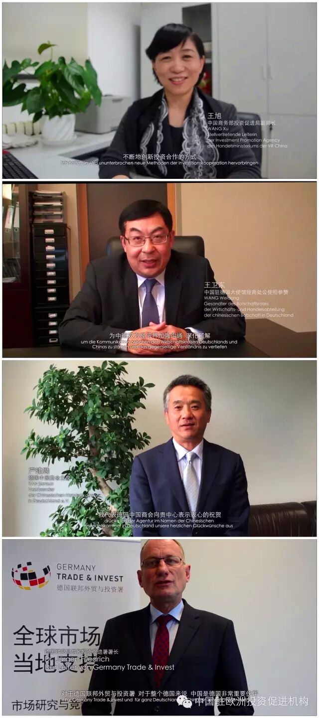 (中国商务部投资促进局王旭副局长、中国驻德国大使馆经商处王卫东公使衔参赞、德国中国商会严建勋主席、德国联邦贸易投资促进署Dr.Friedrich署长送上生日祝福。)