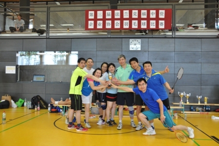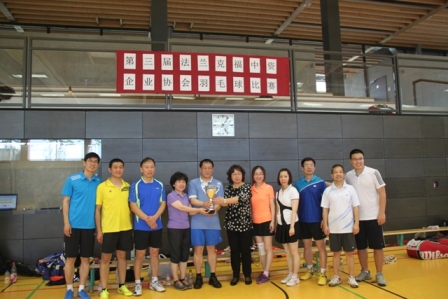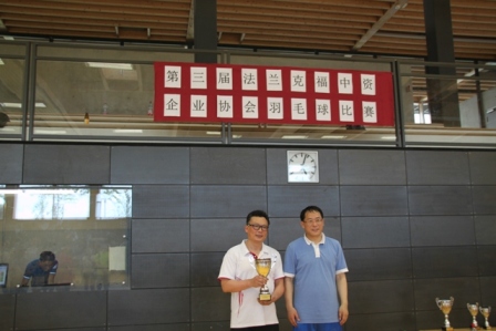 2016年7月17日由驻法兰克福总领馆、法兰克福中资企业协会联合主办的“第三届法兰克福中资企业羽毛球比赛”在Gymasium Riedberg体育馆圆满结束。参加本届比赛的选手们分别来自驻法兰克福总领馆、中国银行法兰克福分行、中国工商银行法兰克福分行、中国建设银行法兰克 福分行、中石化欧洲有限公司、中国签证中心、中国农业银行法兰克福分行、华为技术德国有限公司、中国交通银行法兰克福分行、中国石油技术开发公司德国子公 司、CZICC镇江国际。