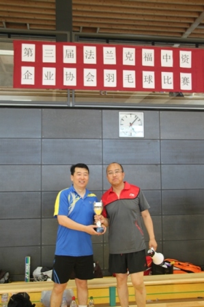 中国银行法兰克福分行刘军副总为冠军混合一队颁奖