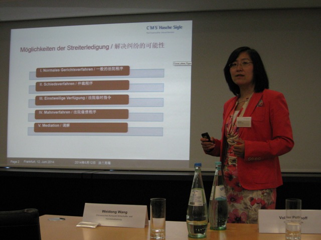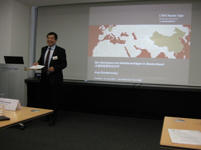 法兰克福中资企业协会与CMS德和信律师事务所联合举办的《德国劳动法及解决中德经济纠纷的法律讲座》于2014年6月12日在德和信律所七楼会议厅圆满结束。