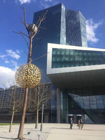 海外网法兰克福,记者高扬4月8日讯。由法兰克福中资企业协会、德国法兰克福莱美两河地区国际投资促进会(FrankfurtRheinMain GmbH International Marketing of the Region) 与法兰克福工商会(IHK Frankfurt am Main)共同组织举办,旨在让参观者了解欧洲中央银行(European Central Bank,简称ECB)最新货币政策及德中金融关系的欧央行参观讲座活动,昨天下午吸引了近50名金融、投资、贸易、服务领域的中国会员聚首欧洲中央银行新大楼,中国驻法兰克福总领馆经商室徐琳领事也出席了活动。