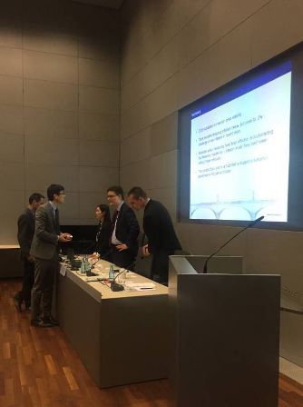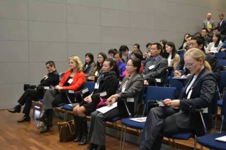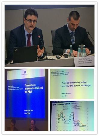 紧接着,欧央行货币政策部主管普通经济学家Spyros Andreopoulos先生给大家做了主题为“欧洲央行货币政策概要以及目前挑战”的报告。Andreopoulos先生首先强调ECB的目标和法定义务:保持欧洲物价稳定——欧央行的所有政策和行为都是为了达到这个目标。他同时指出,“物价稳定”是一个比较宽泛的概念,所以在报告中他也结合了图表数据具体谈论其内容以及如何使用相应的货币政策。比如在制定具体政策时,行长理事会制定利率的目标是:使通胀率低于或接近2%。通过Andreopoulos先生的报告,我们也了解到,如果没有采取这些政策,通货膨胀的现状将会更加严重。报告后中国各大银行代表提出了自己的问题,兴趣高涨的与会者在茶歇期间也抓紧机会与专家进一步交流。茶歇讨论后,欧央行对外发展部的高级经济学家Michel Soudan先生继续为大家做关于“欧洲央行和中国央行关系”的报告。