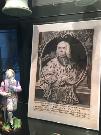 赫希斯特陶瓷厂由Johann Christoph Göltz和Adam Friedrich von Löwenfinck在美因茨的选帝侯Johann Friedrich Carl von Ostein出资支持下,于1746年创建于美茵茨,是德国第二古老的和黑森州唯一的陶瓷生产厂家,而在美茵茨大主教的特许下,美因茨地方徽章中的车轮图案也成为了赫希斯特瓷的商标,在当时这象征着至高无上的荣誉和认可。