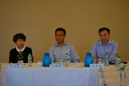 法兰克福中资企业协会副主席单位、国航欧洲地区总部田玉岐总经理(左),驻法兰克福总领馆王顺卿总领事(中),驻法兰克福总领馆经商室朱伟革参赞(右)