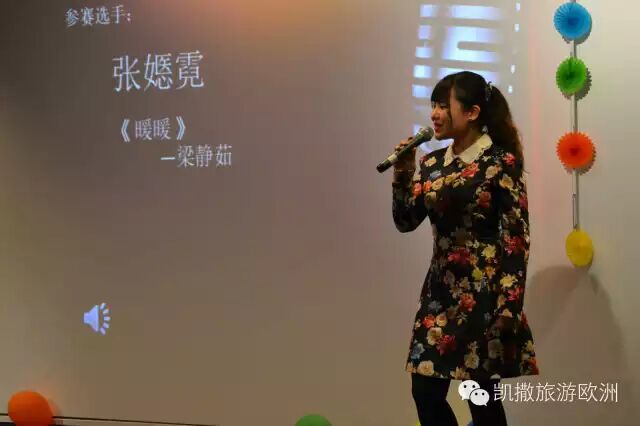 “法兰好声音”主要赞助商之一,凯撒旅游集团已经连续三次赞助“法兰好声音”活动,今年还首次派出俊男靓女参加比赛,表现出对活动的重视和支持。凯撒旅游机票及旅游顾问的杨月星一袭黑裙,一首<<My Heart Will Go On>>,令人仿佛感到大海的涛声迎面而来。凯撒旅游商务接待及定制旅游部身高1米89的章潇先生一亮相,就吸引了全场的目光,他用粤语演唱了<<月半小夜曲>>,深情陶醉,博得满场好评。歌毕,磁性的歌声依然绕梁不绝。就连一向“毒舌”的评委、旅德华人音乐家鄢飞飞老师也感性地评说,你非常享受这个舞台,人与歌曲融为一体,一上台,就是一种对了的感觉,对于你今晚的歌声,任何点评都失去了意义。章潇荣获本届比赛亚军。